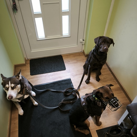 Wichtig: Bei uns gibt es keine Zwinger oder Einzelzimmer, die Hunde leben mit uns im Haus!